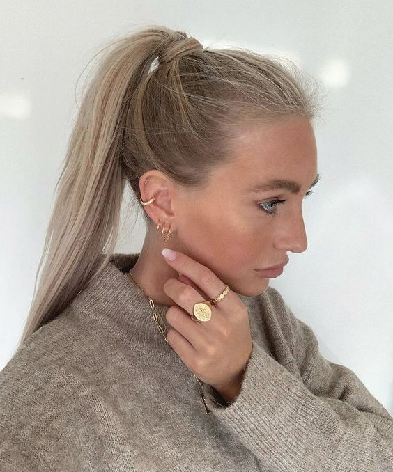 On this photograph, a yellowish ponytail, clean and graceful on the crown with a shrewd texture on the tail, creates a refined but simple taste. This straightforward and fast coiffure is a go-to for busy mornings, appropriate for each the place of work and the health club. It’s a very easy taste that may transition from pace to nighttime, including a slightly of aesthetic enchantment to any outfit.